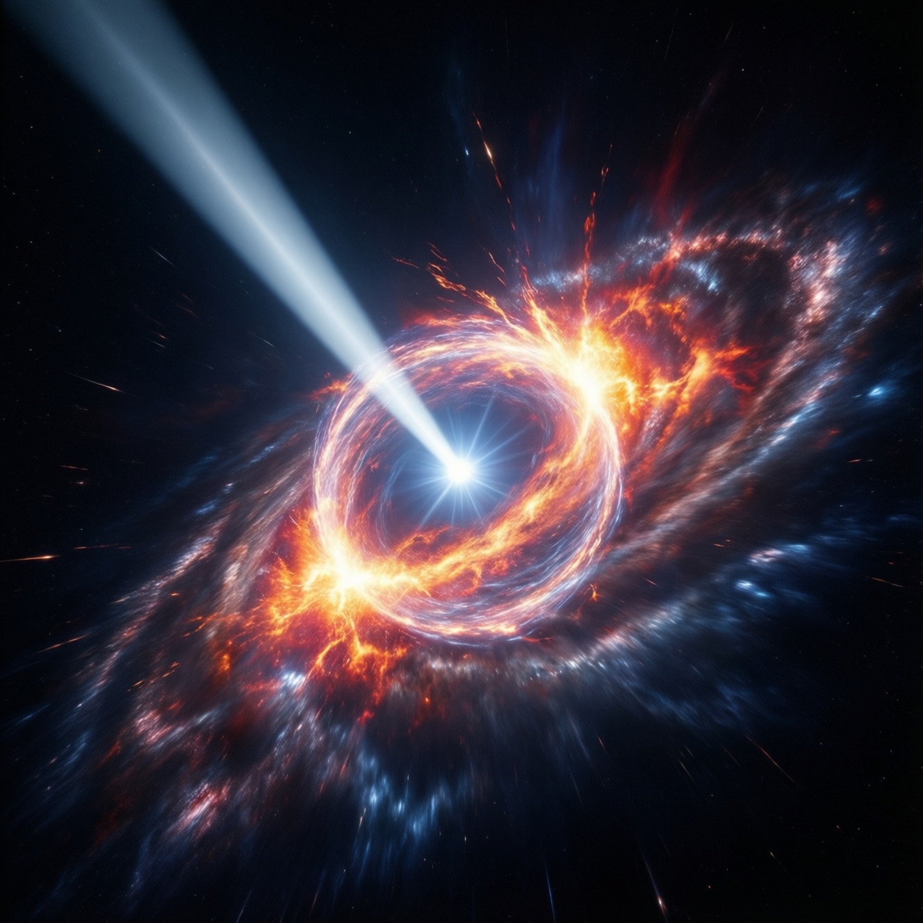 4. Появление лучей излучения: ускоренные частицы и кривизна магнитных линий дают направленное излучение в радио и высоких энергиях.